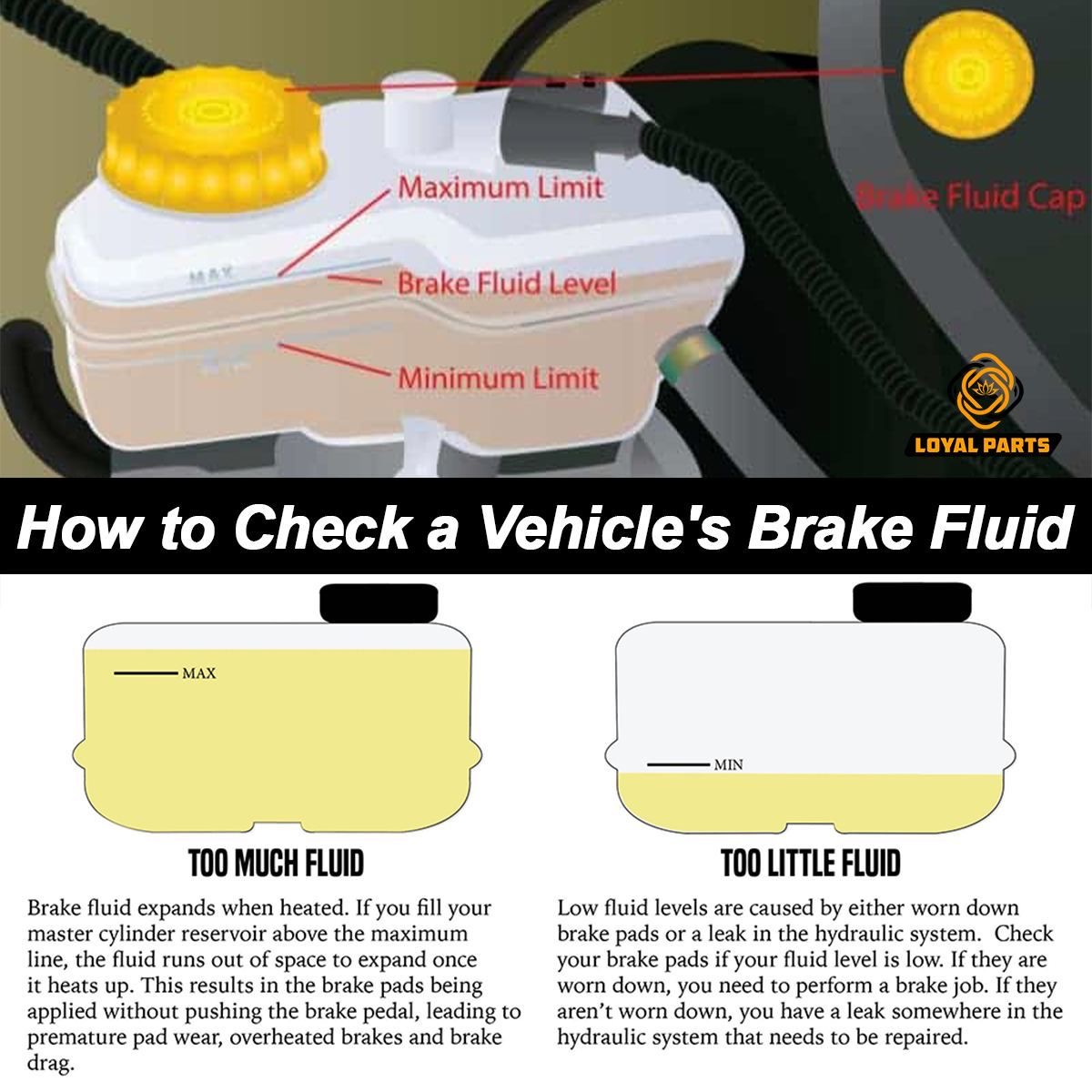 - Also pay attention to the color of the fluid. Fresh brake fluid is clear or light yellow. If it looks dark brown or almost black, the fluid is contaminated and should be replaced, even if the level looks fine.